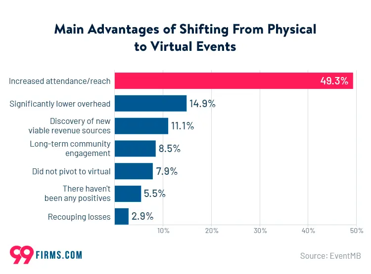 We’ve seen the boom of online events, but they aren’t going anywhere yet. In fact, organisations are still preferring virtual events, thanks to their higher attendance rates. In a recent market survey, 93% of organisations claimed their virtual event was successful. On the other hand, 77% of the attendees preferred virtual events mentioning they are easy to attend.