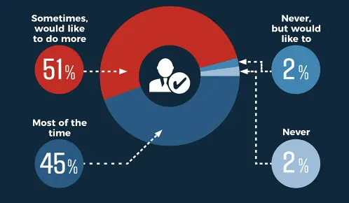 Surprisingly, organisations see hybrid events as a convenient and cost-effective solution. In 2021, 63% of businesses with 2,000+ employees went for hybrid events. The ratio was higher for large companies with over 5000 employees, as 71% of them had hybrid events.