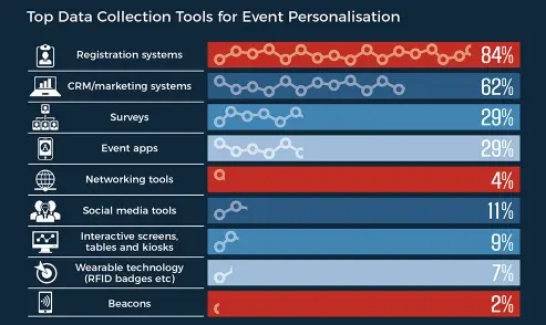 However, for personalisation, event producers need accurate data to gather information about attendees. Registration and marketing systems, surveys, and apps are the most trusted sources for data accumulation.