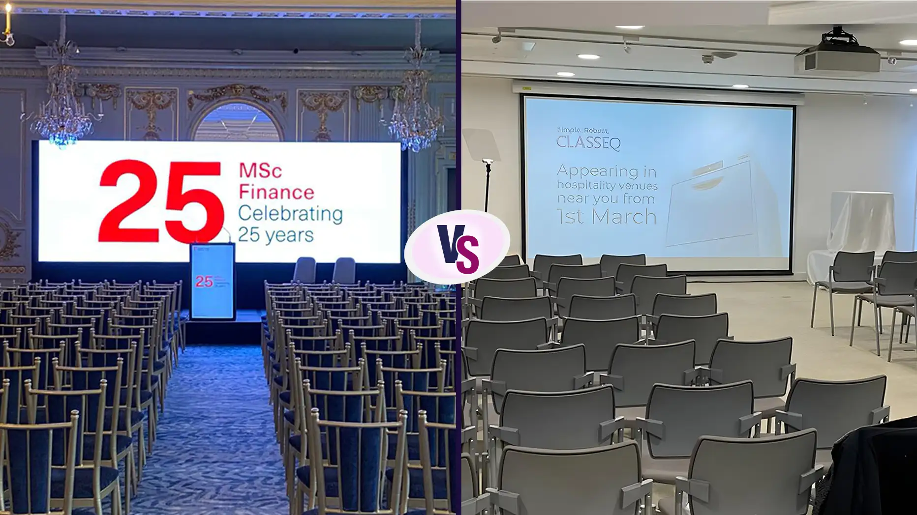 A projector screen is recommended for a UK audience looking to elevate their projection experience. Still, if you are testing the waters or are on a strict budget, renting a projector screen will help you there.